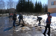 17 апреля проведена акция "Чистый двор". Учащиеся школы (8,10 кл) очистили от снега территорию школы.