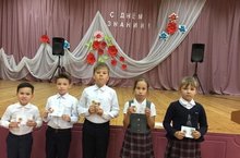 На общешкольной линейке наградили победителей различных конкурсов и вручили значки ГТО