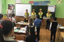В рамках проведения в Республике Татарстан "Недели безопасности" в школе сотрудники ГОсавтоинспекции провели акцию "Шагающий автобус". Ребятам напомнили о правилах поведения на проезжей части.