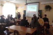 Ак Барс банкы хезмәткәре –Мртынова Л.Р. - югары класс укучылары белән очрашып, кызыклы әңгәмәләр үткәрде. Ул тормыш иткәндә килеп чыккан күп кенә проблемаларга тукталды, финанс мәсьәләләренә басым ясады, балаларны кызыксындырган күп кенә сорауларга җаваплар биреп, югары класс укучыларына һөнәр сайлау буенча үзенең киңәшләрен җиткерде.