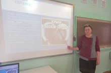 18 нче март көнне тарих укытучысы Әхмәтҗанова Р.Г. 6-9 нчы сыйныфларда Кырымның Россия белән кушылу көненә багышланган "Кырым минем йөрәгемдә" дип аталган дәрес уздырды.