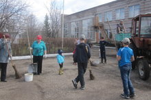 Бүген эшкә башлангыч сыйныф укучылары да кушылды. Мәктәп яны территориясен себерү һәм чүпләрне түгү белән мәшгүль булдык.