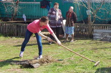 Алдынгы сыер савучы хезмәт ветераны, пенсионер Сәкинә әбигә йорт тирәсен җыештыру буенча ярдәм оештырылды.
