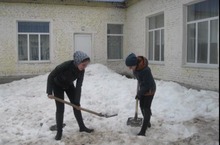 Без мәктәп биләмәләрен кардан чистартабыз.