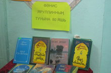 Мәктәп кипапханәсендә Фәнис Яруллинның тууына 80 яшькә багышланга китап күргәзмәсе ясалды. Анда әдипнең әсәрләре куелды.