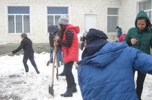 В школе прошел субботник по очитске территории от снега.