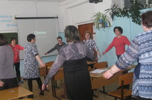 Газизова А.Н., председатель комисси по охране труда, прочитала лекцию и провела гимнастику для коллектива школы.