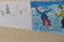 В школе идет конкурс рисунков среди учащихся начальных классах "Буду бдительным на льду"
