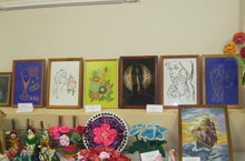 Районда оештырылган коллегидәге күргәзмәдә Әхмәтҗанова Алиянең кул эшләре.