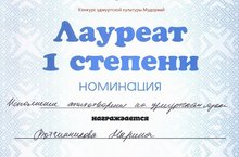 В номинации «Исполнение стихотворения на удмуртском языке»наша воспитанница, Вотчинникова Марина, стала лауреатом 1 степени.ПОЗДРАВЛЯЕМ!