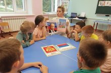 14.09.2022 г в старшей разновозрастной группе прошло занятие по патриотическому воспитанию на тему «Символика России». Старшие дошкольники уточнили свои имеющие знания о символике России, затем все вместе слушали гимн России. Играли в дидактические игры «Собери флаг», «Разложи картинки о России».