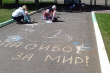 В рамках акции "Я рисую мелом" с детьми на прогулке проведено тематическое рисование. -