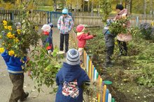 Как это ни печально, но с наступлением осени природа увядает. Воспитанники старшей разновозрастной группы тоже заметили, что растения на клумбах утратили свои сочные цвета, стали невзрачными и сухими. И все дети вместе с Натальей Сергеевной дружно взялись за уборку клумб. Дети с удовольствием помогали воспитателю.