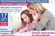 Новый проект для родителей "Республиканское родительское интернет-собрание. Как учить, а не мучить?" 16.11.2017 "Министерство образования и науки Республики Татарстан совместно с Общественным советом при МОиН РТ запускают новый проект для родителей "Республиканское родительское интернет-собрание. Как учить, а не мучить?" по актуальным вопросам воспитания. Подключайтесь, задавайте свои вопросы специалистам по адресу roditelirt@mail.ru. Он-лайн трансляция на сайте киу.рф 17 ноября 2017 года с 12.00 до 13.30."