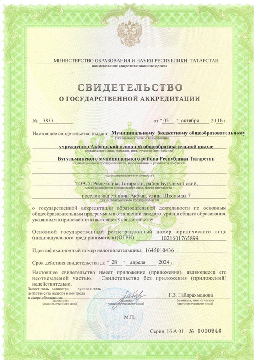 Муниципальное бюджетное общеобразовательное учреждение Акбашская основная общеобразовательная школа Бугульминского муниципального района Республики Татарстан / Татарстан Республикасы Бөгелмә муниципаль районы муниципаль бюджет гомуми белем бирү учреждениесе Акбаш төп гомуми белем бирү мәктәбе