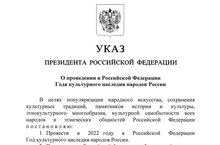 В целях популяризации народного искусства и сохранения культурных традиций, памятников истории и культуры, этнокультурного многообразия, культурной самобытности всех народов и этнических общностей Российской Федерации, 2022-й год объявлен годом культурного наследия народов России.
