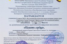 Воспитанник пдо Недошивиной Л.А. - Нагоркин Никита принял участие в республиканской научно-практической конференции школьников "Память сердца". Никита занял 3 место в секции "Лицо войны" номинация "Солдаты Победы".
