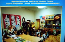 На современном этапе развития российского общества гражданское образование школьников становится предметом государственной политики и обязательной неотъемлемой частью образования, начиная с начальной школы. Успешное развитие государства во многом зависит от гражданских качеств подрастающего поколения. Воспитанием гражданственности с начальных классов занимается педагог до объединений «Краеведение» Маханько О.Н. Она готовит экскурсоводов из среднего и старшего звена, которые потом самостоятельно проводят уроки гражданственности для начальной школы. Музейный урок «Наш музей!» для учащихся 2 класса провели экскурсоводы 7 класса, члены объединения « Краеведение».