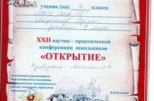 17 февраля в школе №1 состоялась Научно-практическая конференция «Открытие». ООШ № 8 в секции «История» представлял ученик 7 класса Лифантьев Руслан с проектом «Учитель-фронтовик». Его работа по созданию КНИГИ ПАМЯТИ учителей школы № 8, участников Великой Отечественной войны 1941 – 1945 годов получила хорошую оценку. Поздравляем Руслана с Дипломом 3 степени. Руководитель объединения «Краеведение» Маханько О.Н.
