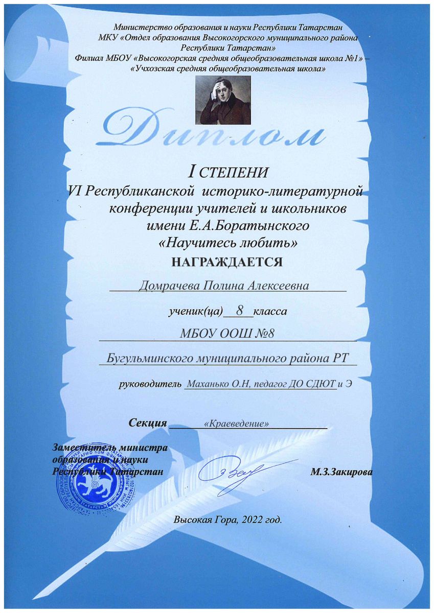 Республиканская историко-литературная конференция им. Е.А. Боратынского "Научитесь любить"