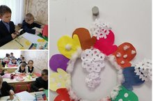 В студии "Цветная планета" прошло занятие на тему: "Новогодний венок из варежек".