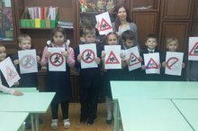 Педагог рассказала об истории возникновения Правил и дорожных знаков, вспомнили основные правила поведения на дороге. Дети с удовольствием приняли участие в викторине по ПДД и в заключении, изготовили по своему желанию дорожный знак.