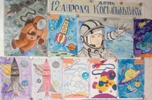 Выставка детских рисунков , посвященная Дню космонавтики.