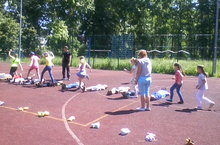 Сегодня у нас спортивные состязания - мальчики против девочек. На спортивной площадке школы № 11 мы устроили соревнования - мальчики против девочек - так сами ребятишки решили. Бегали, прыгали, скакали, кувыркались, придумывали сами конкурсы. И кто сказал, что женщины слабее мужчин? Соревнования окончились победой девчонок! Молодцы!
