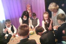А сегодня наши студийцы отправились в страну Именнинию за подарками. На поезде ехали, по болоту с кочки на кочку прыгали, тоннель вопросов прошли, каравай испекли и подарки друг другу подарили. Какие молодцы!