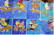 В студии "Цветная планета" прошло занятие на тему: "Птичка на ветке".