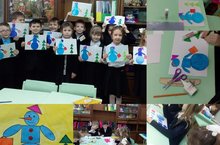 В студии "Арлекино" прошло занятие на тему: "Снеговик" из геометрических фигур.