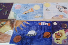 Руководитель студии "Волшебная шкатулка" провела беседу о первом полете первого космонавта Ю.А. Гагарина в космос. Студийцы нарисовали композицию "Космос", пофантазировали о марсианах, о жителях луны.
