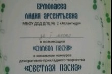 Награждается Ермолаева Л.А. дипломом за первое место в конкурсе "Светлая Пасха"