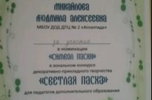 Награждается педагог дополнительного образования Михайлова Л.А. грамотой за участие в конкурсе "Светлая Пасха"
