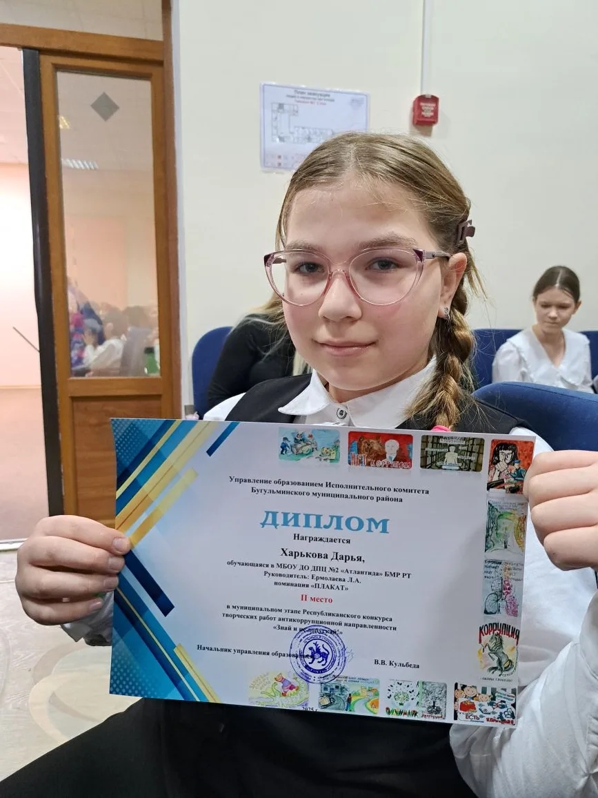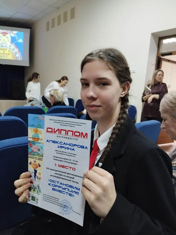 В конкурсе постеров «Остановим коррупцию вместе» Дипломом Гран-при награждена Виктория Богомазова, Дипломом за I место награждена Ирина Александрова.