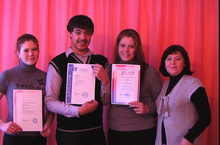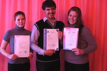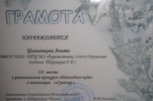 Диплом победителя Международного детского творческого фестиваля "Южный полюс" - Гаврилова Виктория. Диплом победителя Международного детского творческого конкурса "Апельсин" - Тарасенко Елизавета. Диплом победителя Международного детского творческого фестиваля "Звезды нового века" - Власов Сергей.