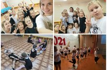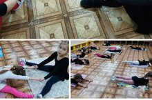 Младшая студия эстрадного танца "Верейс" изучали новые упражнения на занятии. 21.02.2022
