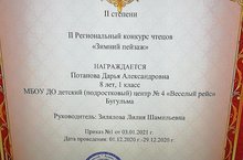 Диплом II Регионального конкурса чтецов "Зимний пейзаж" 11.01.2021