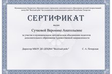 Сертификат за участие в муниципальном методическом объединении педагогов художественной направленности. 26.11.2020