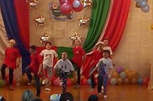 " 1 раз в первый класс" Муниципальный концерт, прошедший на центральной площади, посвященный Дню знаний.Студия эстрадного танца "Верейс" выступила с танцем "Стиляги"Педагог по тенису провела занимательные игры с гостями праздника. 02.09.2018
