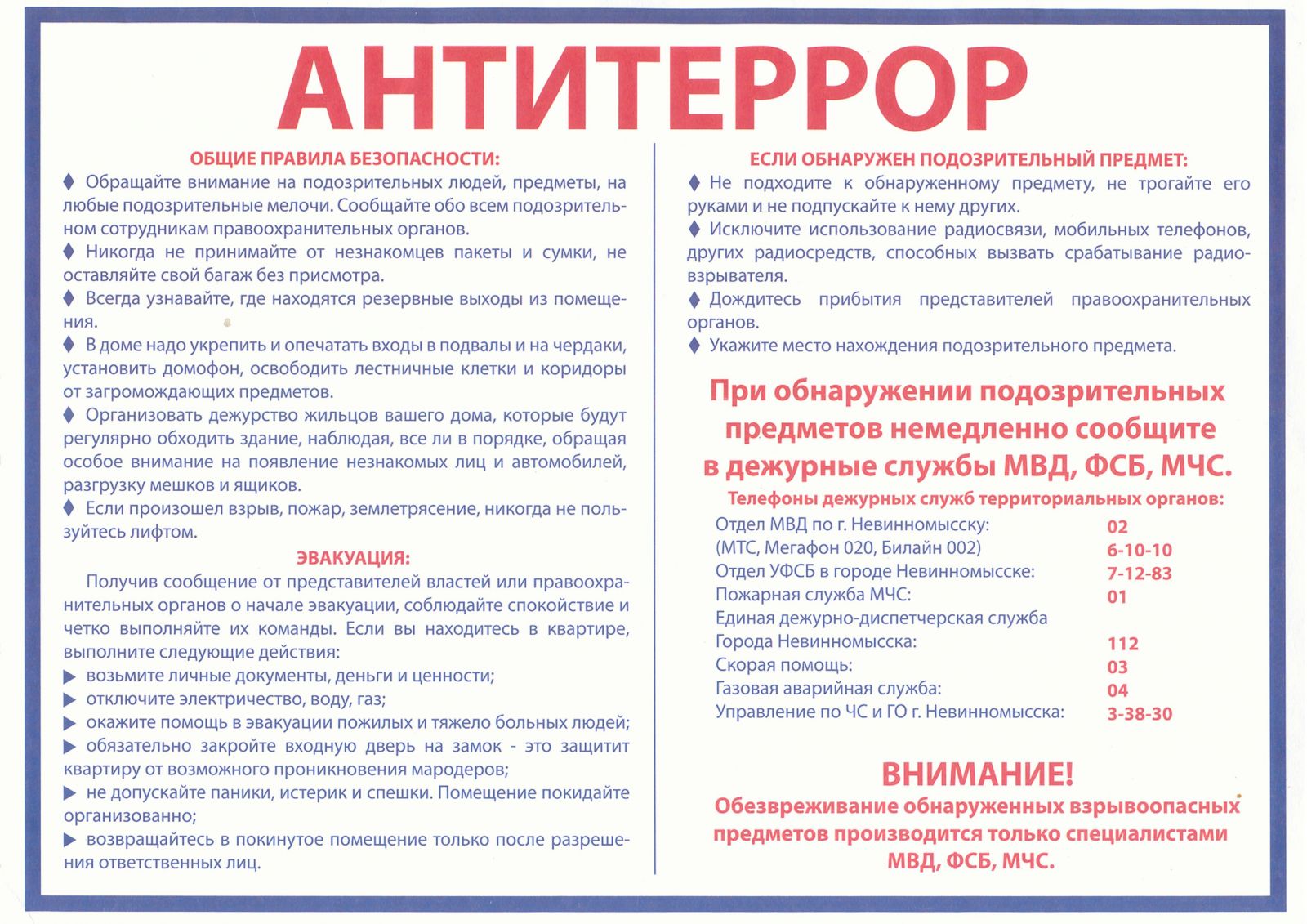 Рекомендации гражданам по действиям при угрозе совершения террористического акта