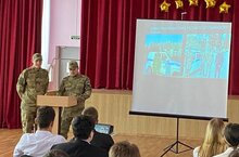 Активисты Центра "Форпост" совместно с ДПЦ № 6 "Зарница" Ильсур Хабипов и Никита Федореев в СОШ 4 провели урок Мужества.