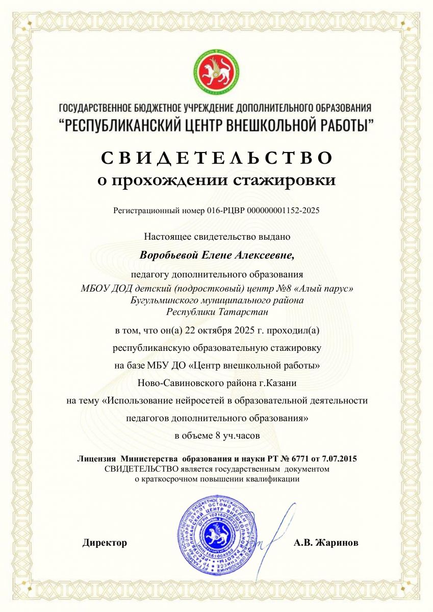 Воробьева ЕА свидетельство республиканский мастер-класс