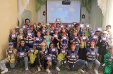 После каждому ребенку были вручены световозвращающие брелки, и тетради по закреплению правил дорожного движения.