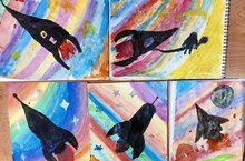 Учимся изображать ракету в полете и звездное небо, передавая в рисунке характерные особенности космоса.