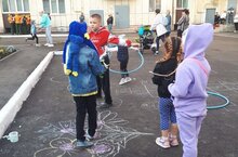 Педагоги провели конкурс детских рисунков на асфальте "Счастье, солнце, дружба – вот что детям нужно!", а также для детей провели спортивные игры. -