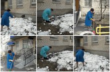 "Субботник" Навели порядок на территории: раскидывали снег, разрыхляли сугробы. 17.04.2021
