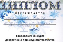 30 декабря 2017 года на центральном водоеме в честь наступающего 2018 года собаки прошел городской конкурс декоративно - прикладного творчества "Чудо - валенки" среди учреждений дополнительного образования . Воспитанница нашего центра Аделя Шарипова совместно с педагогами приняли активное участие и завоевали диплом второй степени.