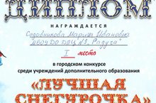 30 декабря на центральном водоеме прошел городской конкурс "Лучшая снегурочка" среди учреждений дополнительного образования . Педагог дополнительного образования МБОУ ДО ДПЦ № 9 "Радуга" Марина Ивановна заняла 1 место.