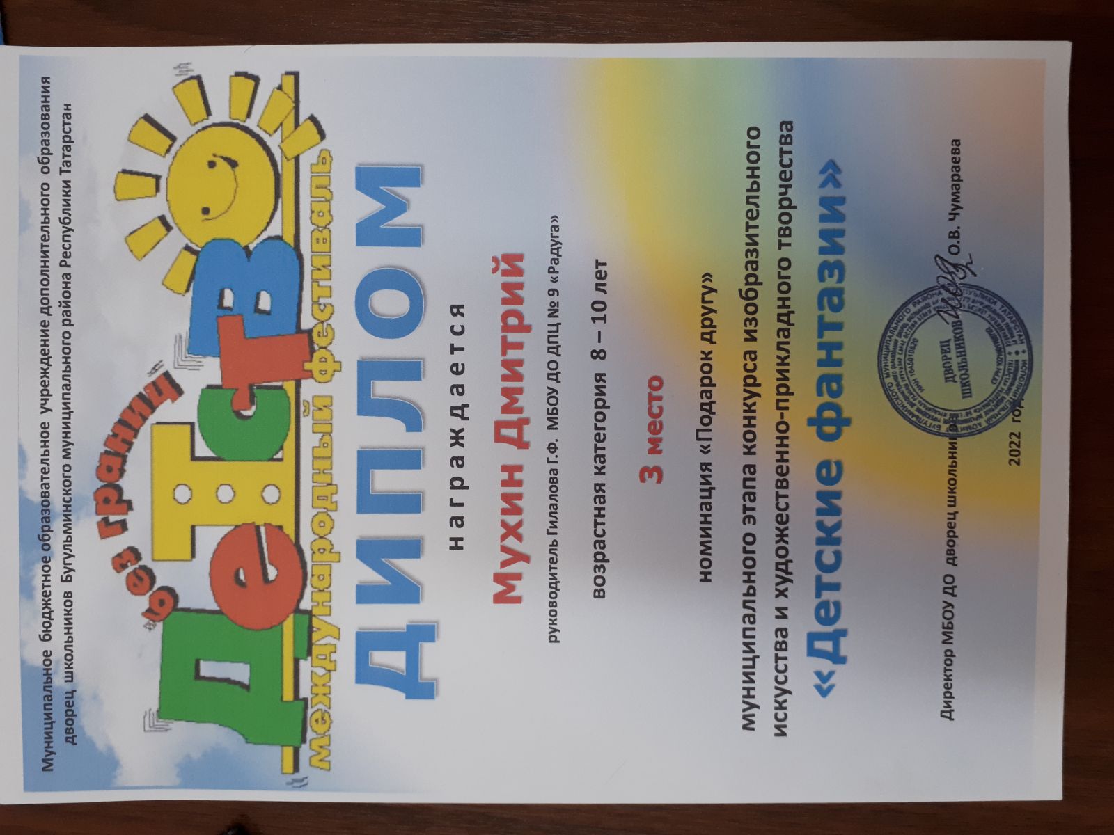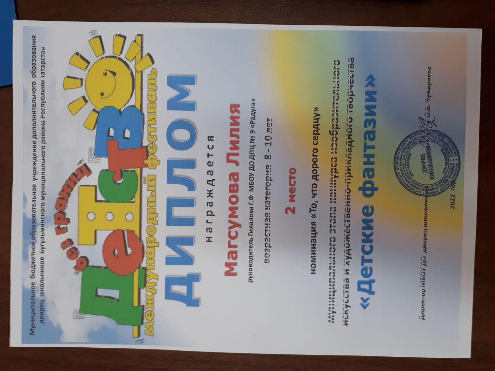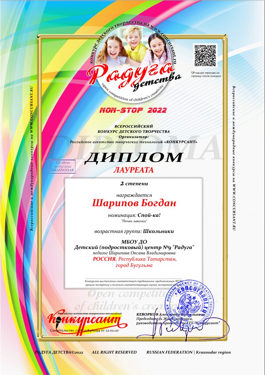 2 место, Всероссийский, Радуга детства, Шарипова О.В.jpg